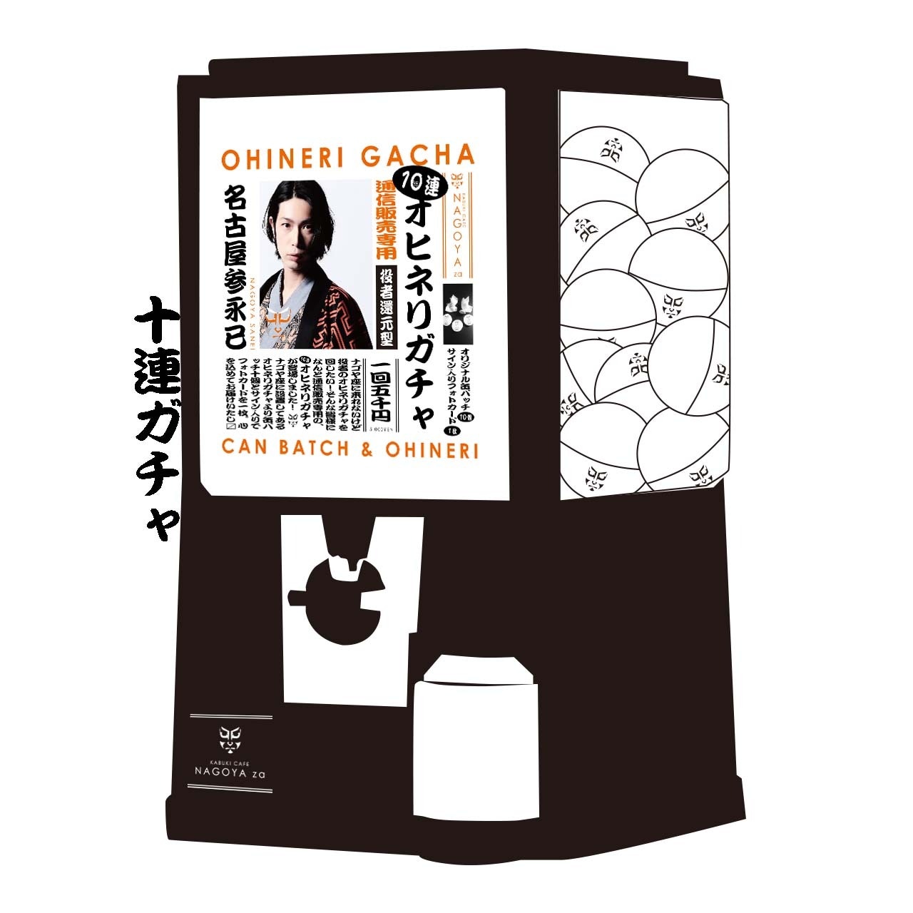 ナゴヤ座に設置してあるオヒネリガチャより缶バッチ10個とサイン入りでフォトカードを1枚。心を込めてお届けいたします!