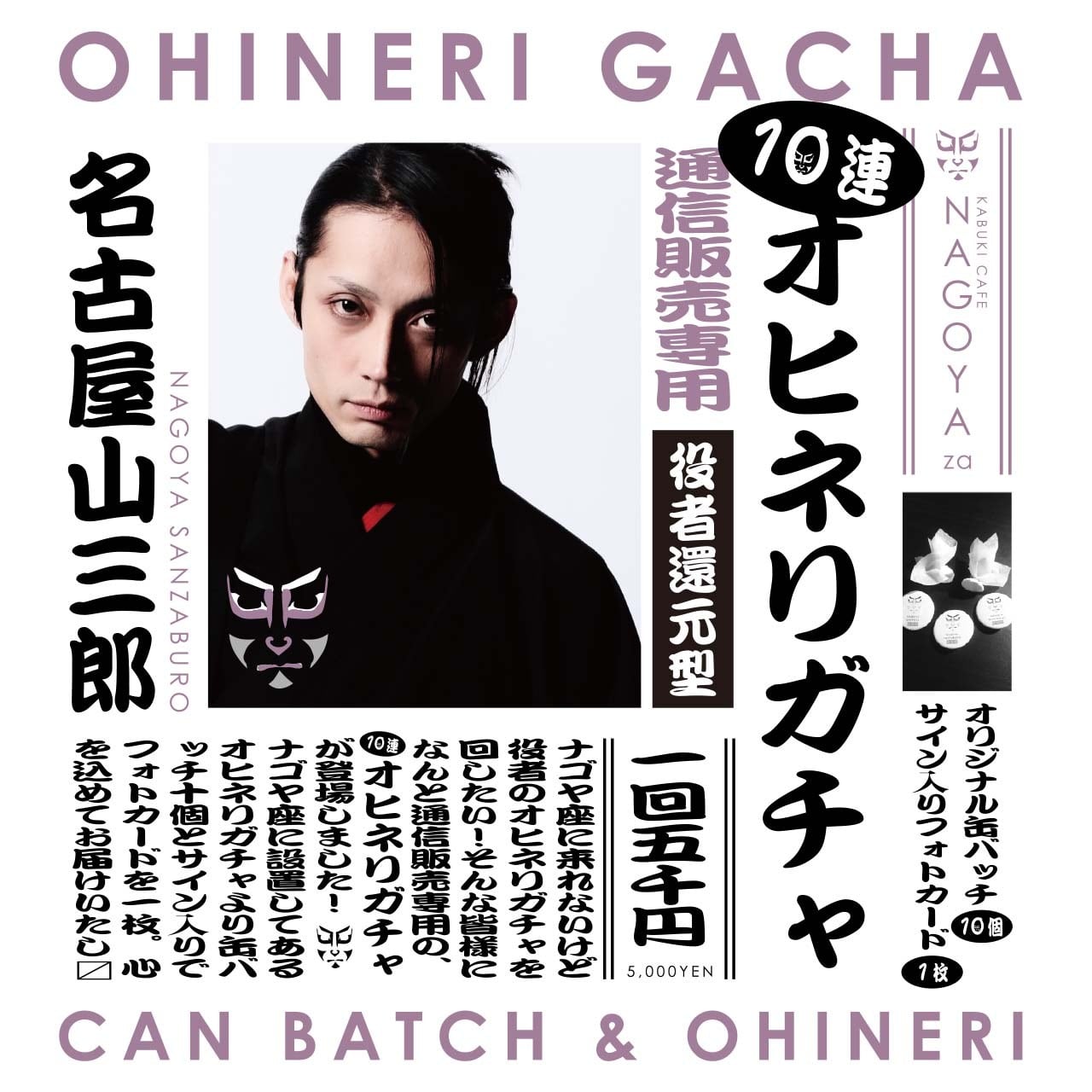 ナゴヤ座に設置してあるオヒネリガチャより缶バッチ10個とサイン入りでフォトカードを1枚。心を込めてお届けいたします!